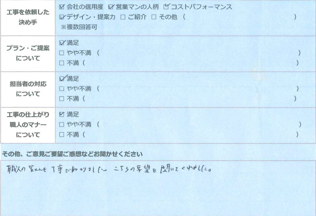 職人の皆さんも丁寧で助かりました。こちらの要望を聞いてくれました。